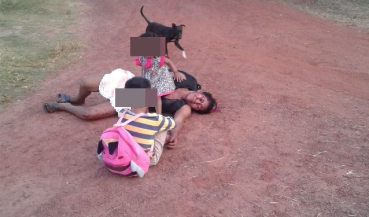 Após as agressões a mulher caiu ferida no meio da rua, as crianças ficaram ao lado da mãe, sendo que uma garota ficou sentada no colo da mãe e também ficou com manchas de sangue no rosto com o sangue da própria mãe.